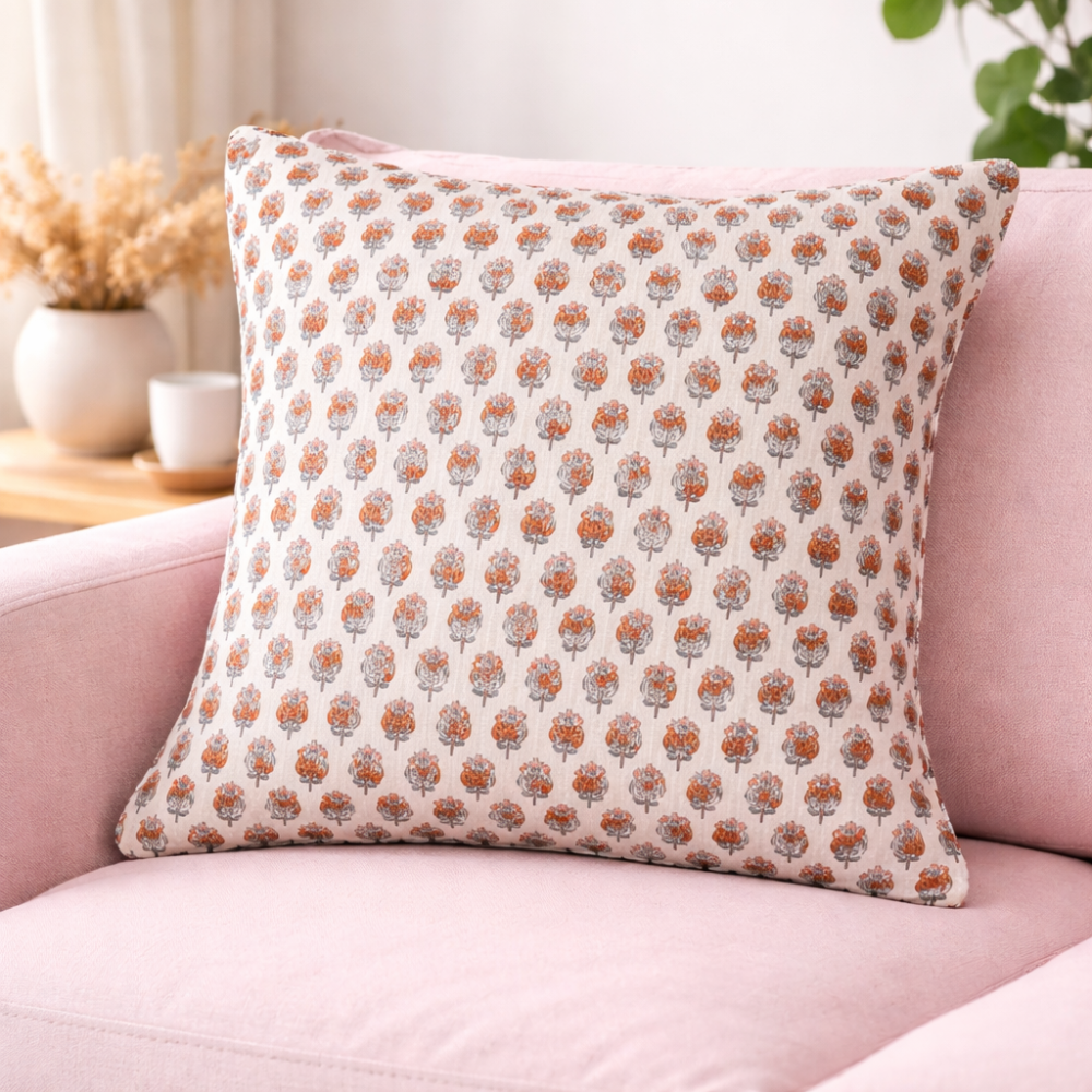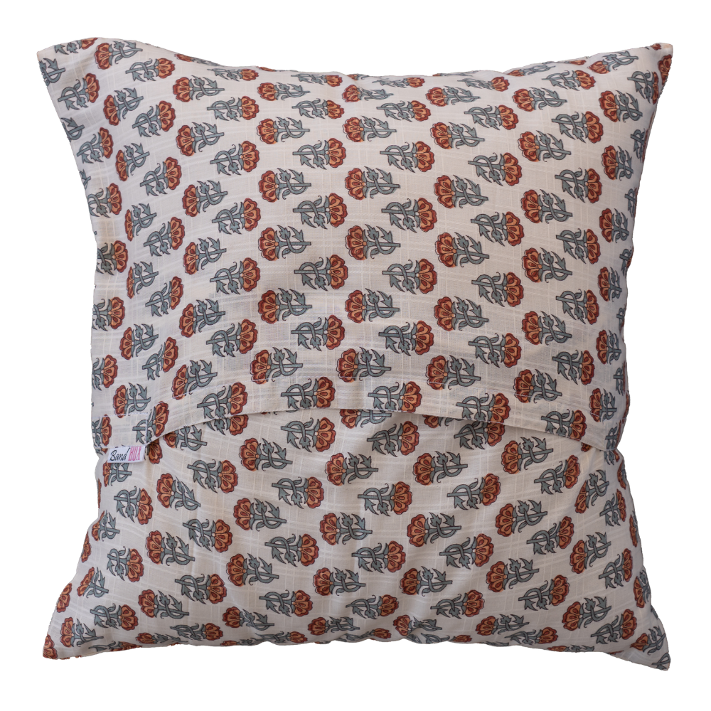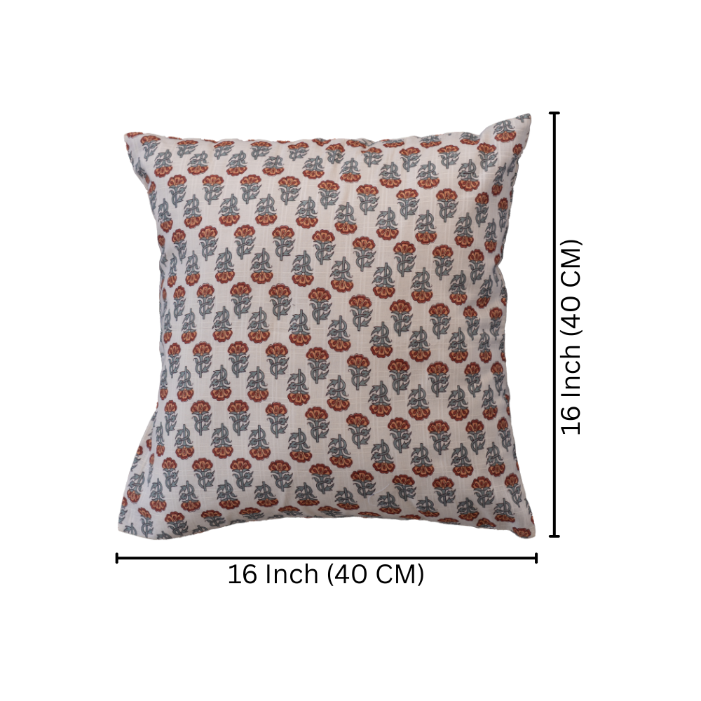 Enhance your home décor with this elegant cushion cover featuring a timeless floral buta printed pattern. Crafted from soft and breathable cotton fabric, it offers comfort along with a refined traditional look. The subtle color combination with intricate motifs makes it perfect for both modern and ethnic interiors. Designed with a convenient slip-on closure, it ensures easy handling and maintenance. Lightweight and durable, this cushion cover is ideal for adding a graceful and cozy touch to your living room or bedroom space.