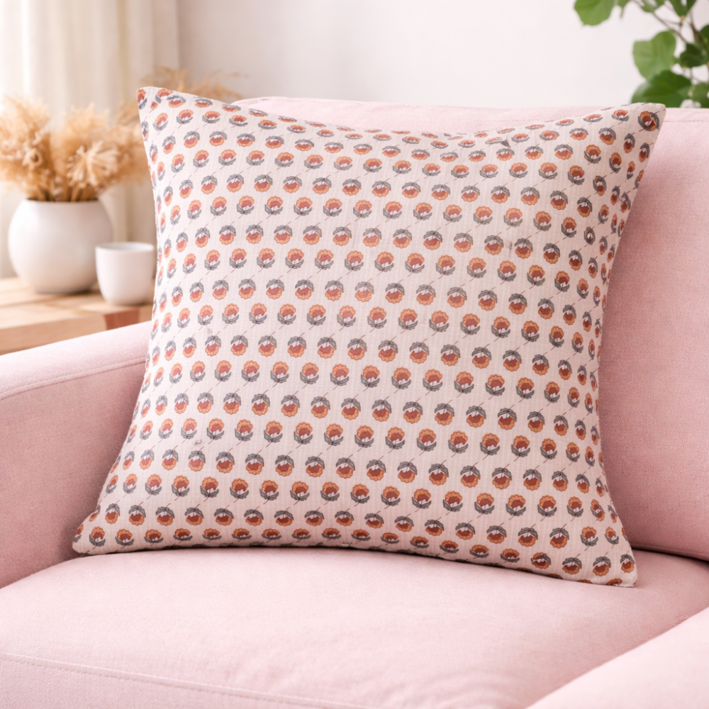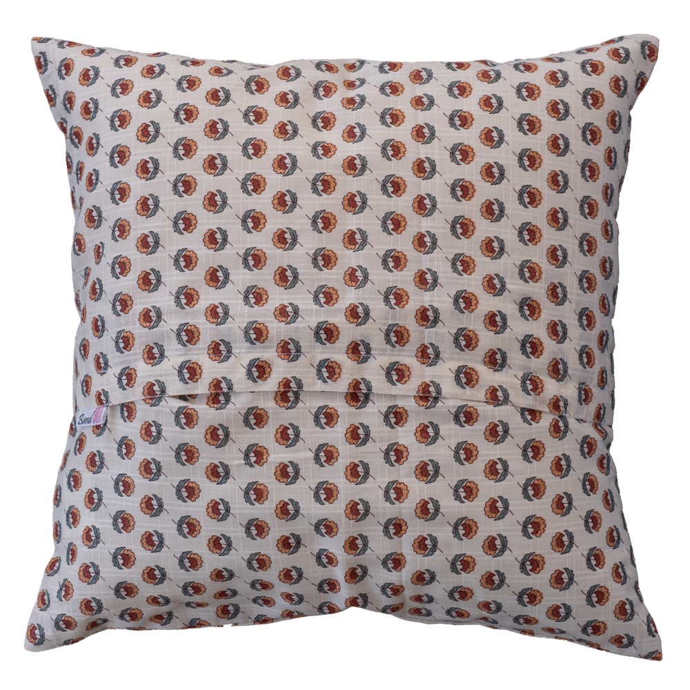 Add a touch of timeless elegance to your space with this beautifully designed cushion cover. Made from soft and breathable cotton fabric, it features a charming floral printed pattern with delicate multicolor blooms arranged in a balanced layout. The subtle border detailing enhances its classic appeal, making it perfect for both traditional and modern interiors. Designed with a convenient slip-on closure, it is easy to use and maintain. Lightweight and comfortable, this cushion cover brings a fresh, graceful vibe to your living room or bedroom décor.